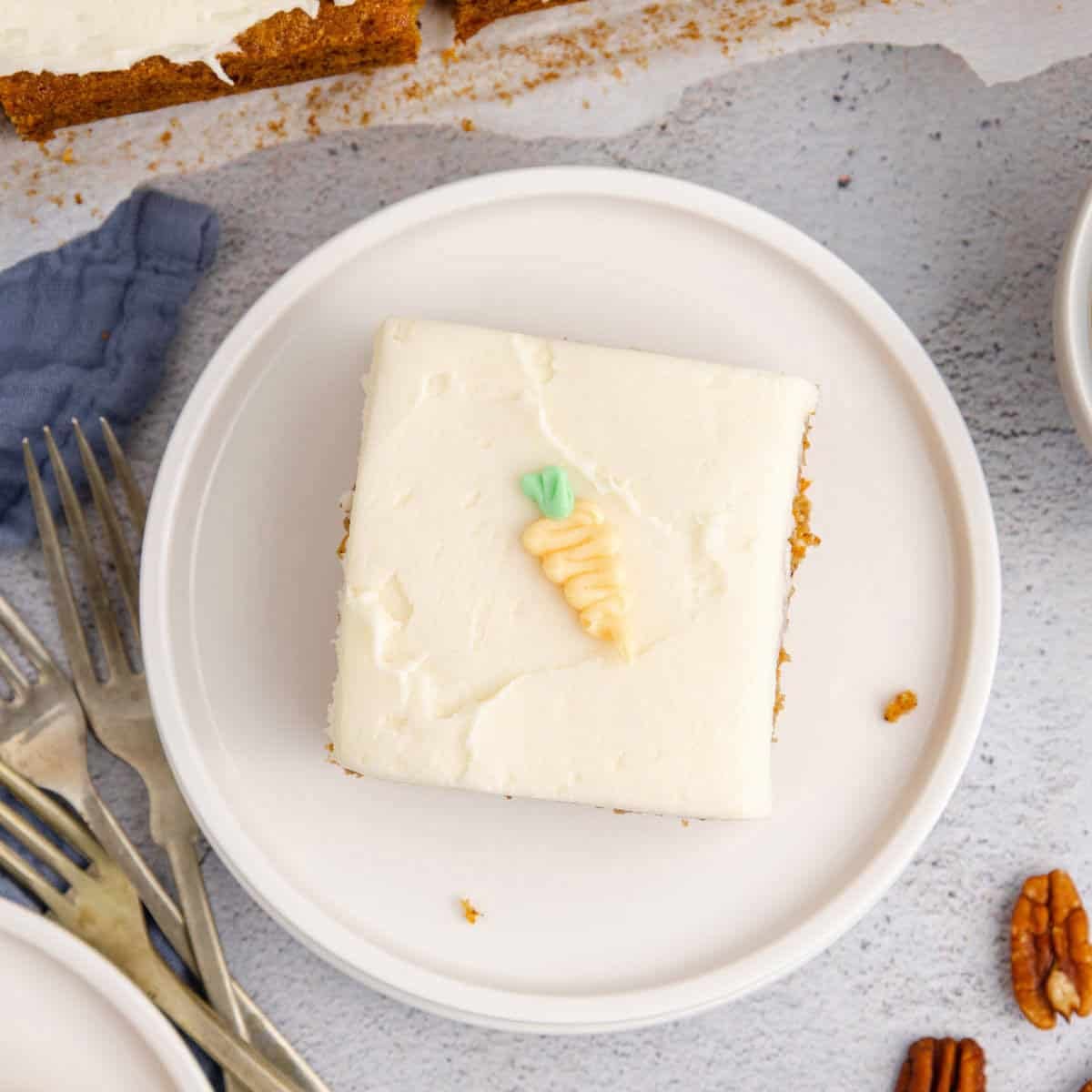 "I like a sheet cake instead of a layered cake, it's so much easier to make! The cake itself was soft, perfectly spiced, and was so good paired with the cream cheese frosting."