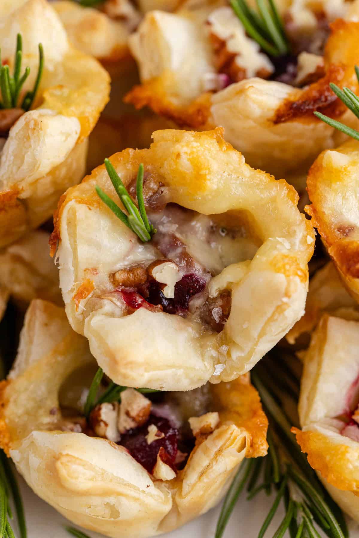 I love the combination of flaky puff pastry, creamy Brie, and sweet-tart cranberry. They are the perfect little savory and sweet bite!