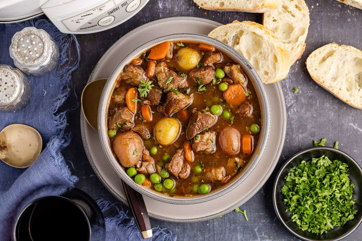 This stew starts on the stovetop to build flavor, then finishes low and slow in the Crock Pot, making it a mostly hands-off meal once everything is added.